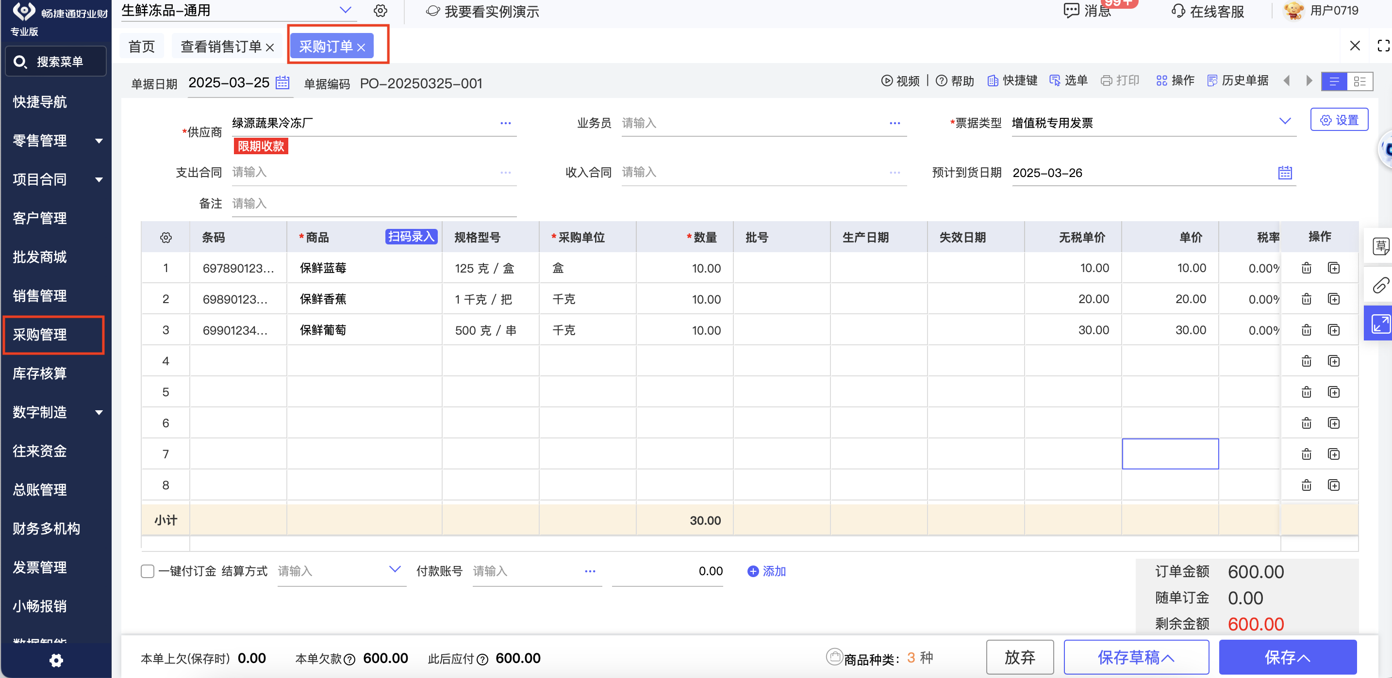 - 采购部高效审核:采购部在PC端集中审核采购申请单,系统支持按供应商、档口等条件智能分单,快速生成采购订单,再也不用手工拆分。
